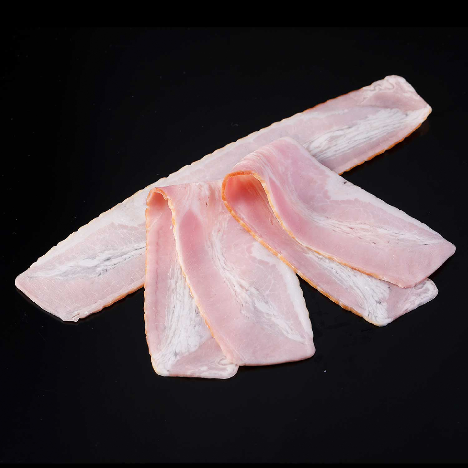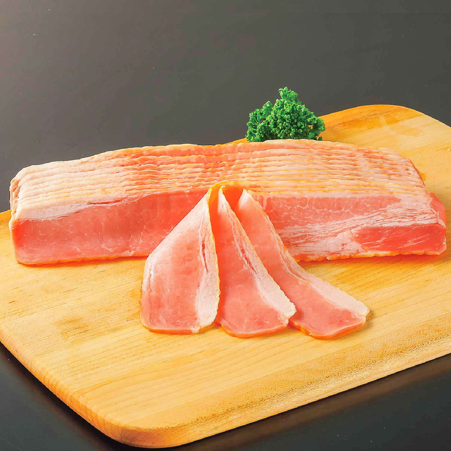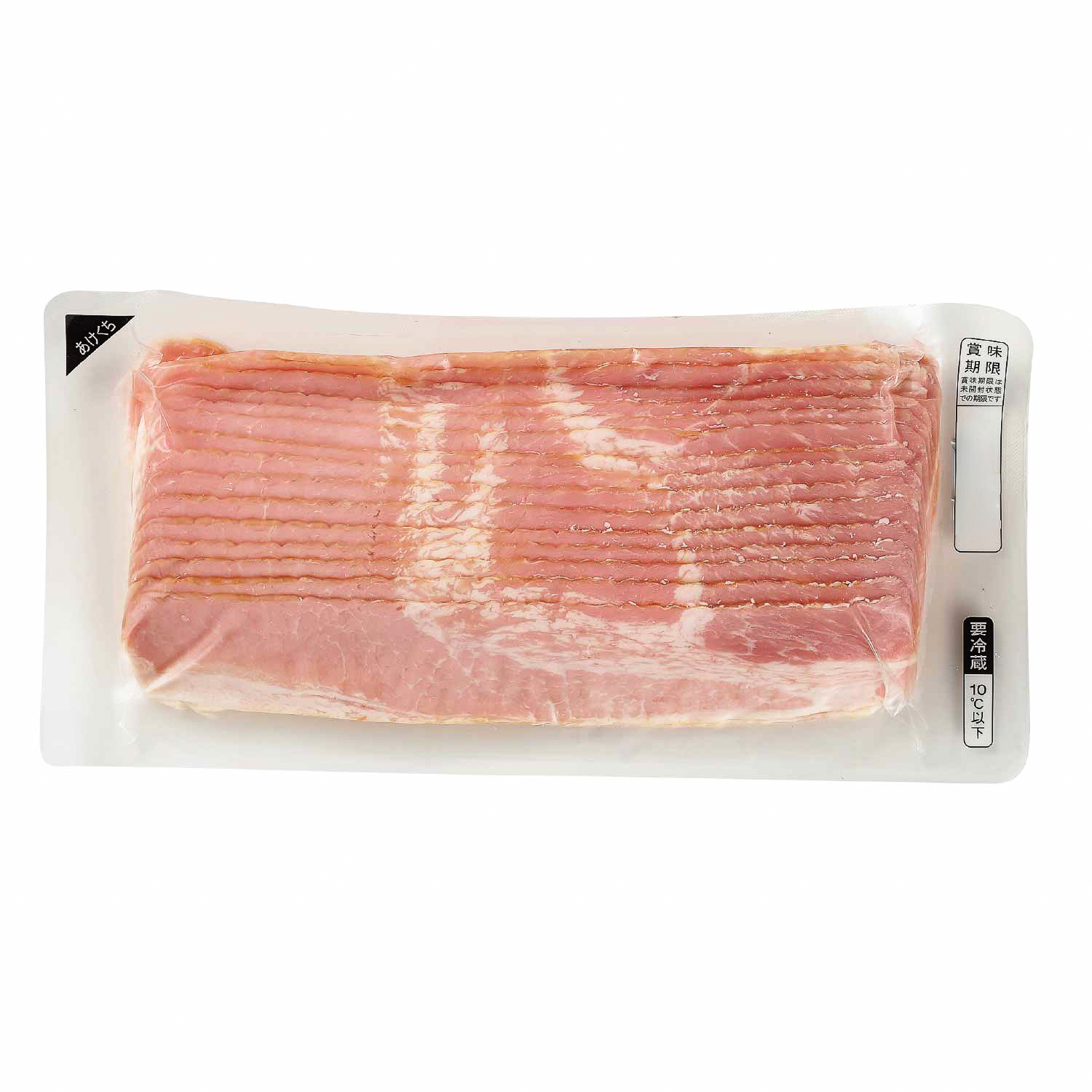 特長 豚バラ肉を使用し、じっくりスモークしたベーコンです。上段15枚下段15枚の使いやすい形態です。
