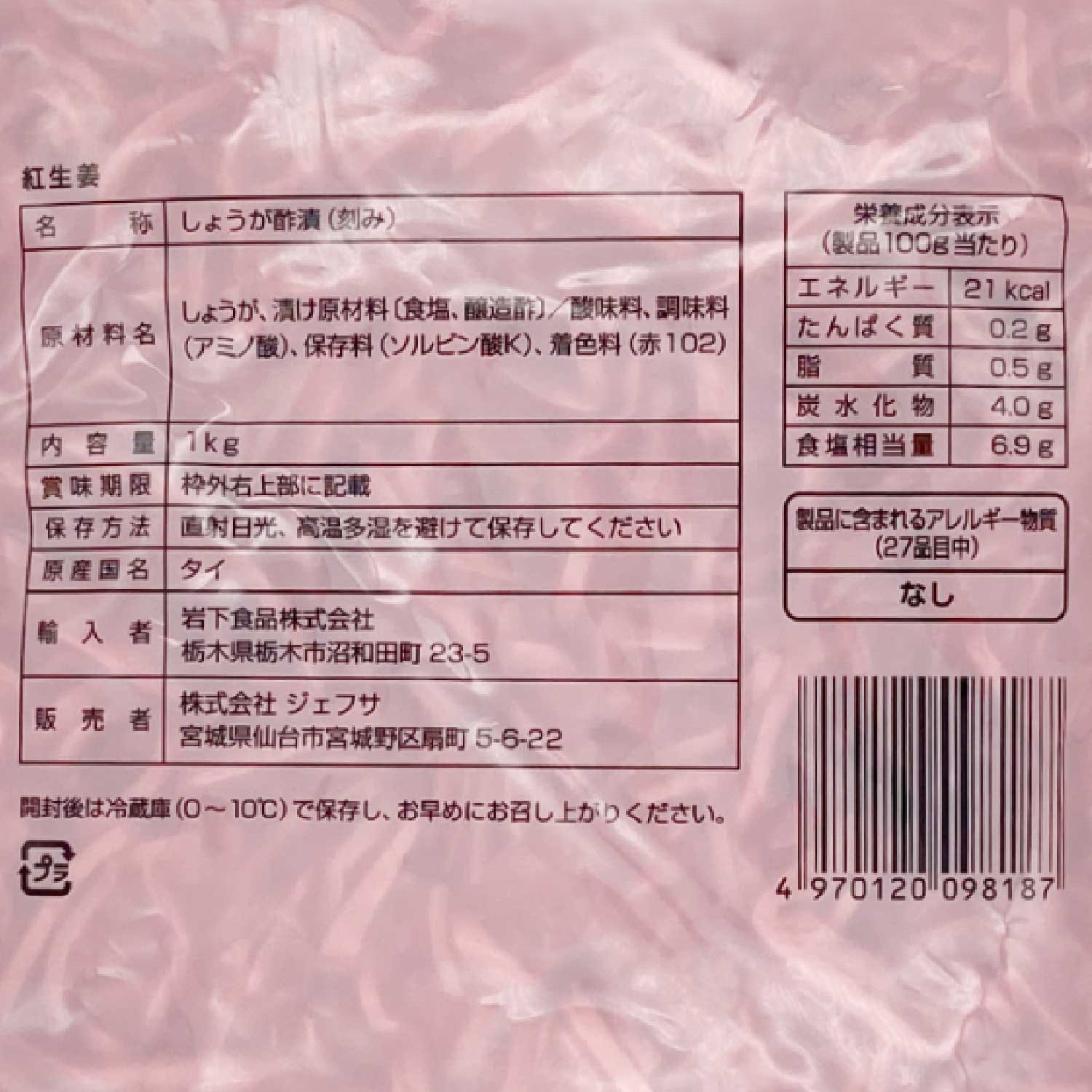 冷蔵 紅生姜 千切 1kg