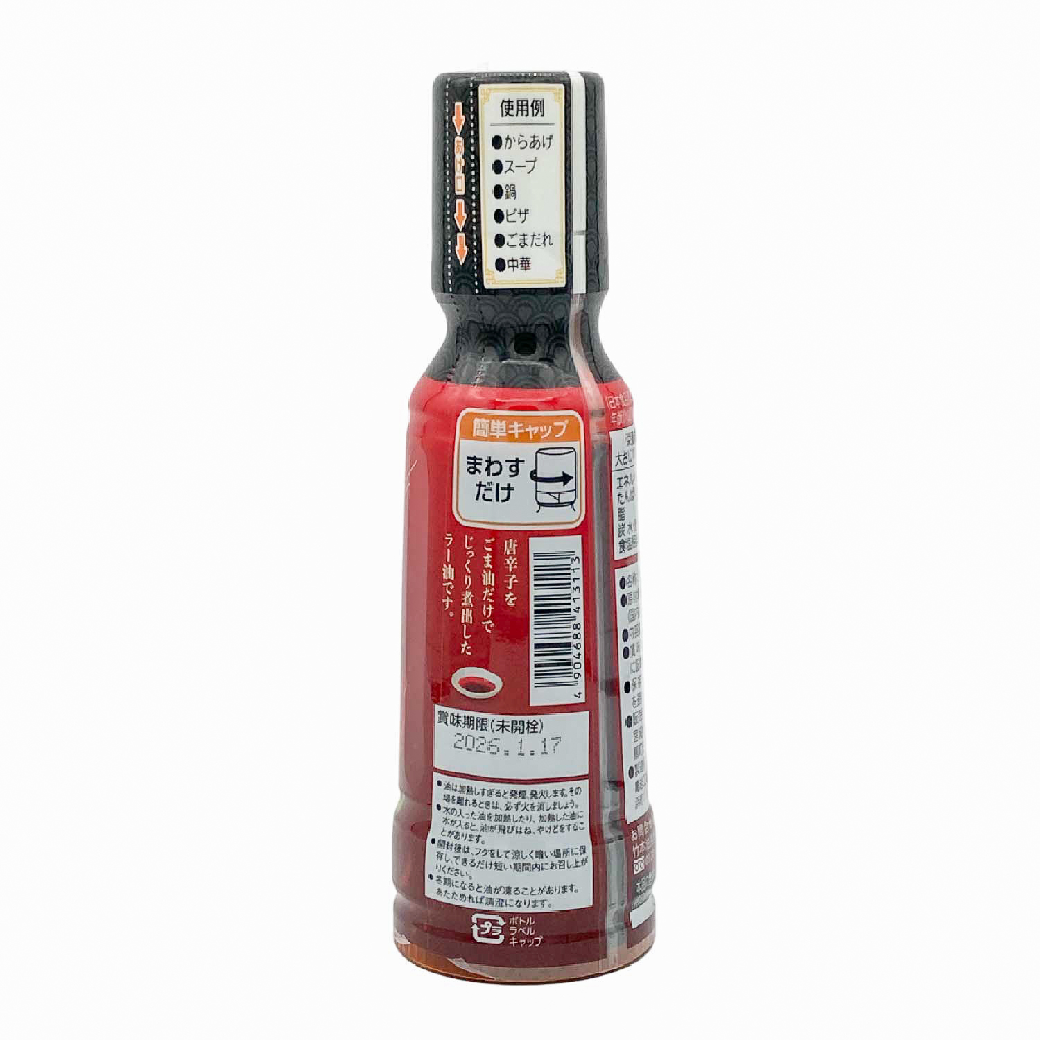 特長 液だれしにくい滴下ボトルを使用。添加物不使用で唐辛子をごま油だけで煮出しております。