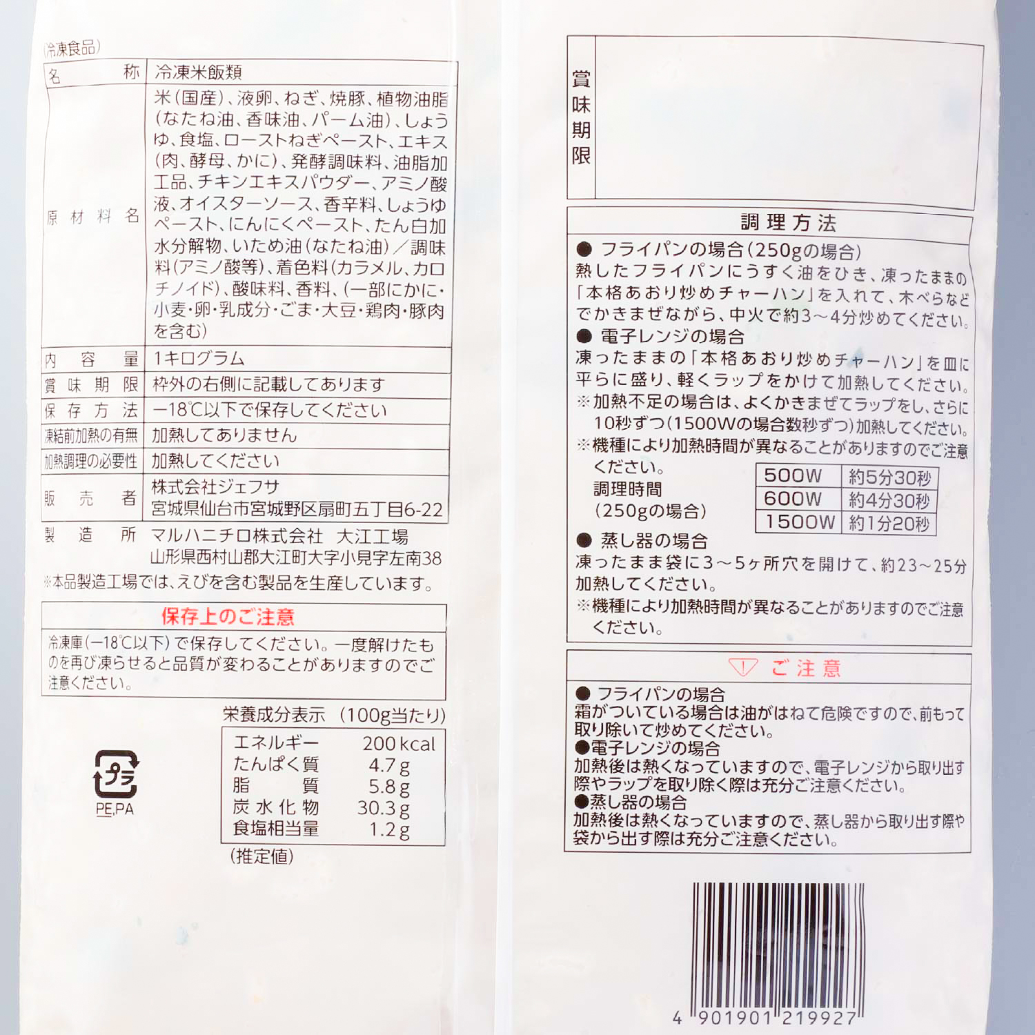 冷凍 本格あおりいためチャーハン 1kg