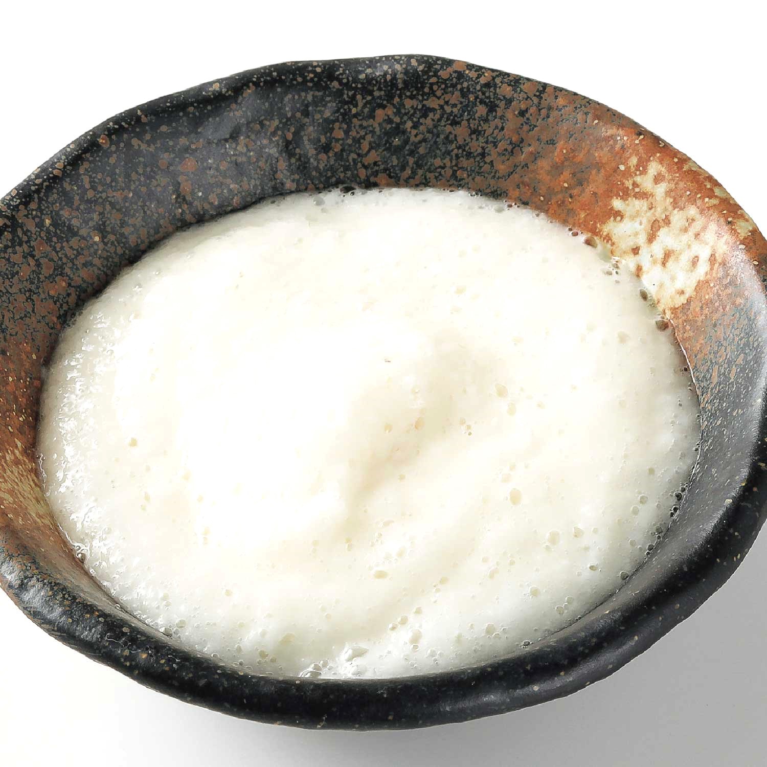 特長 解凍するだけで国産やまいものとろろを提供できます。長芋と大和芋(いちょういも)のミックスタイプです。