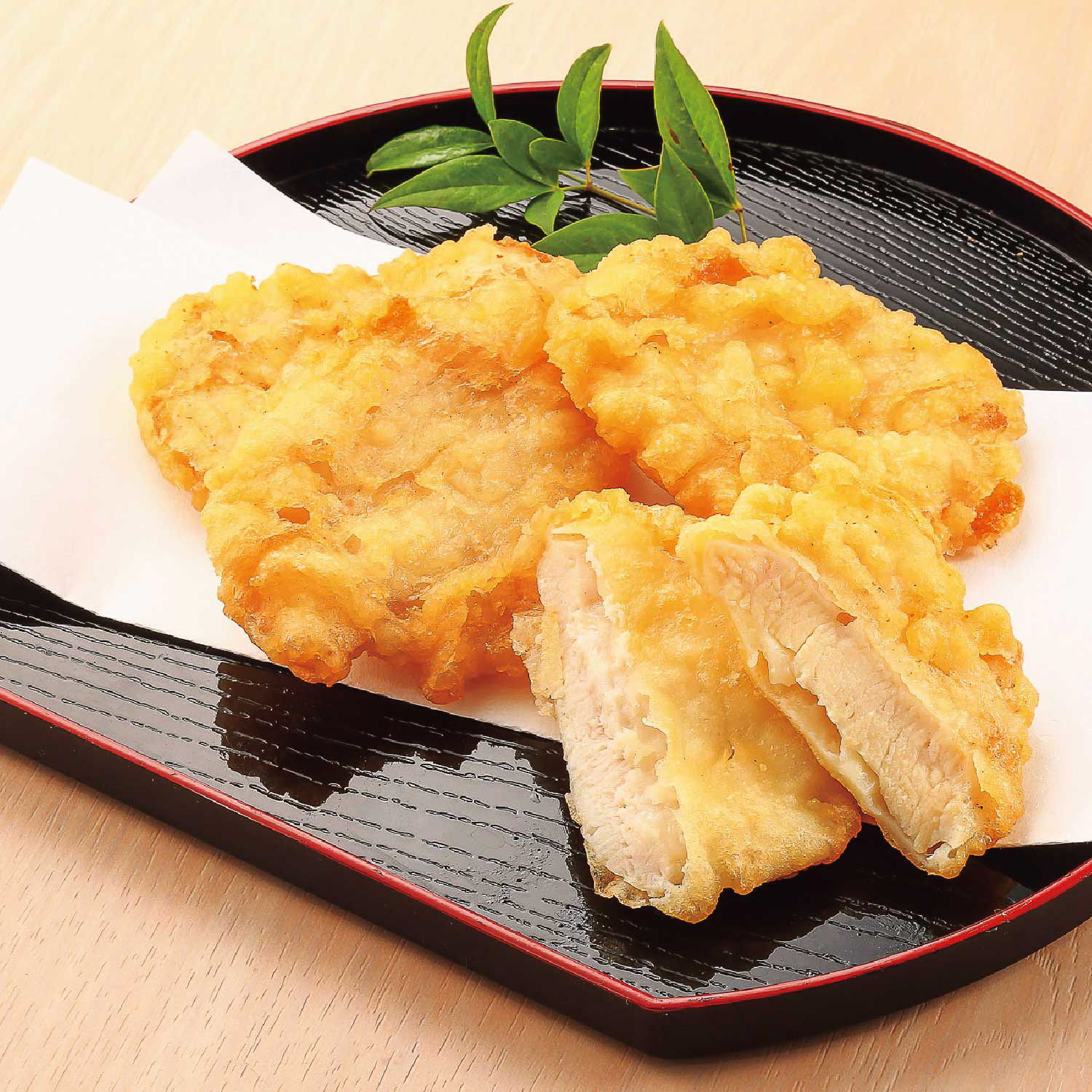 特長 プリフライにした鶏天ぷらになります。油調済みのため揚げるだけで手間いらずです。