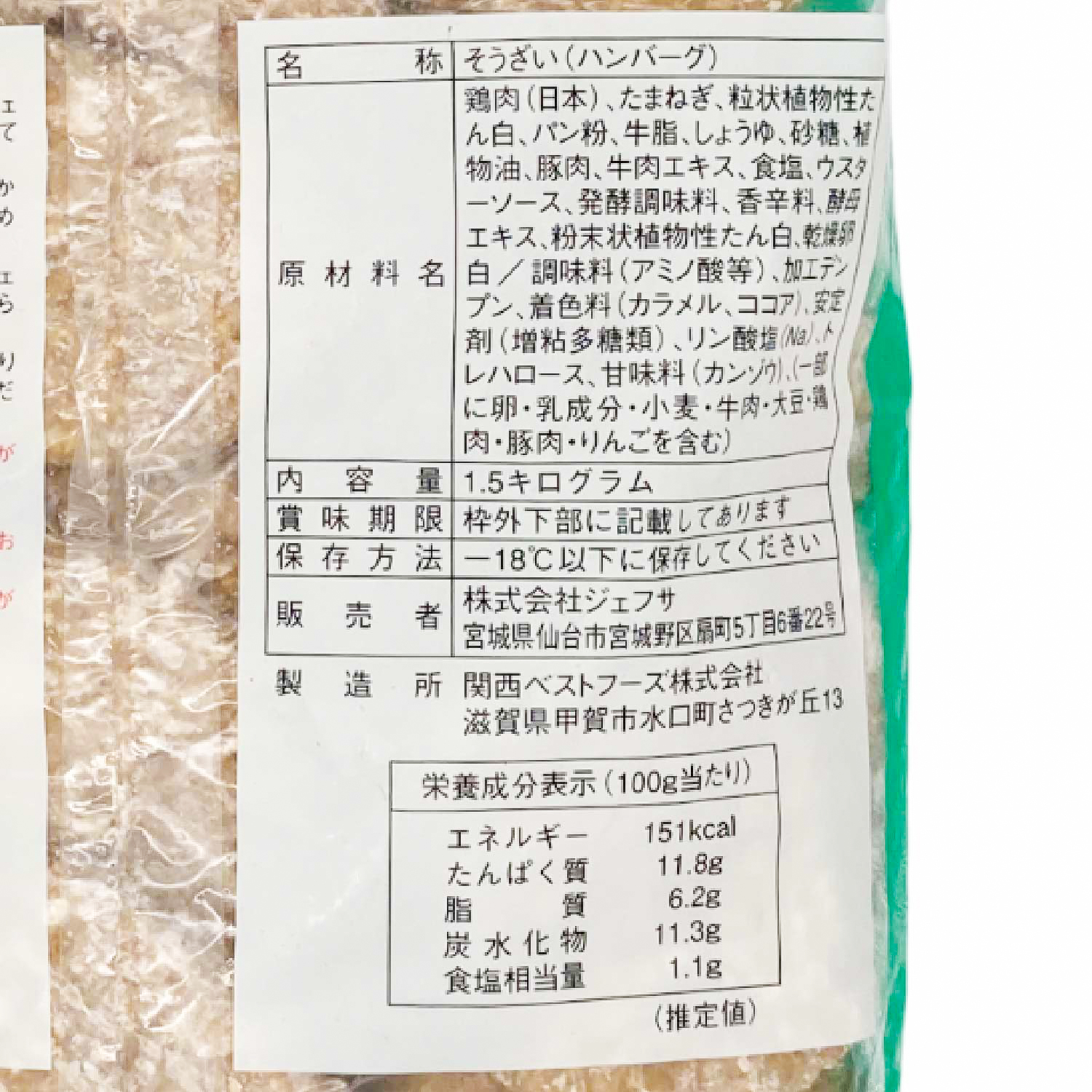 名称(種類別) ふんわりハンバーグ60R