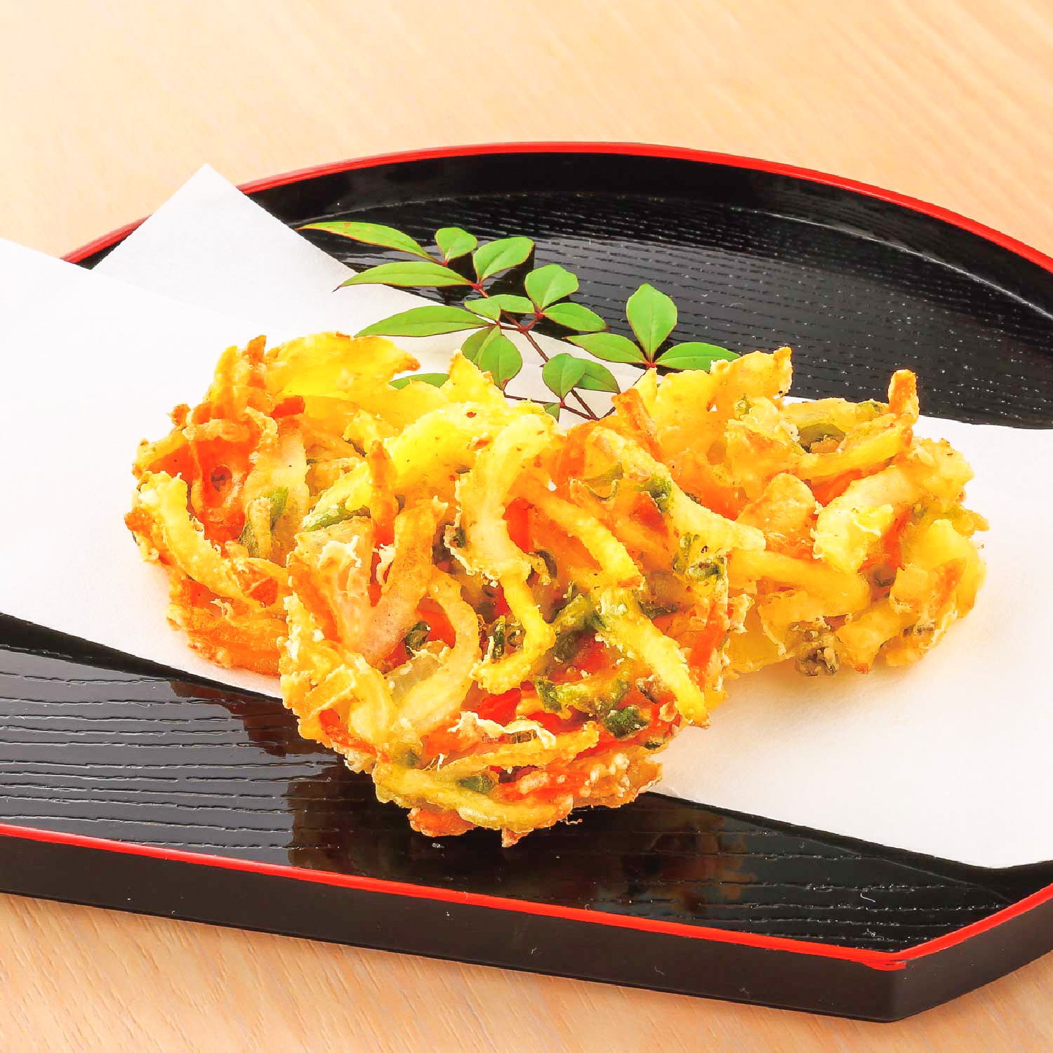 特長 玉ねぎ、じゃがいも、人参、いんげんを使った 小さなかき揚げです。