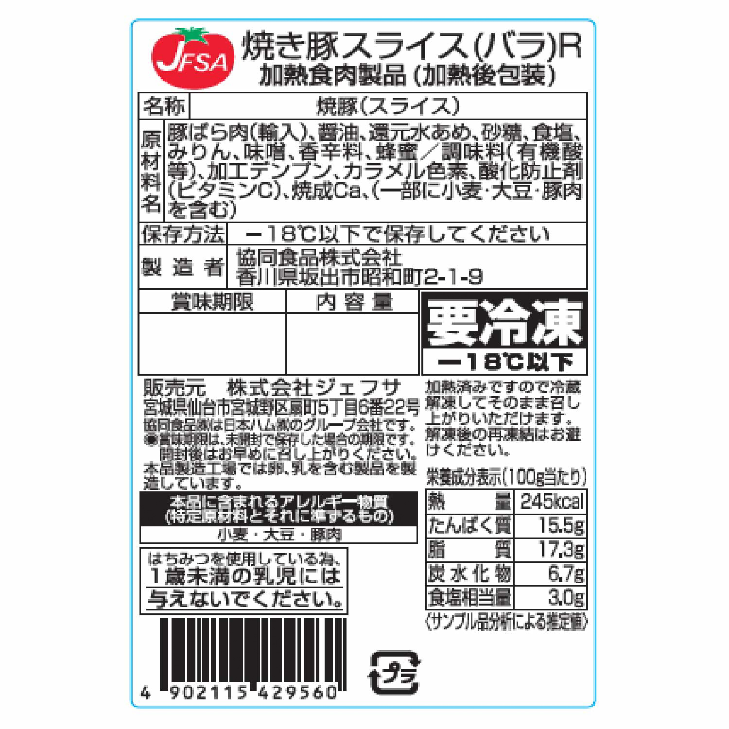 名称(種類別) 焼き豚(バラ)スライス