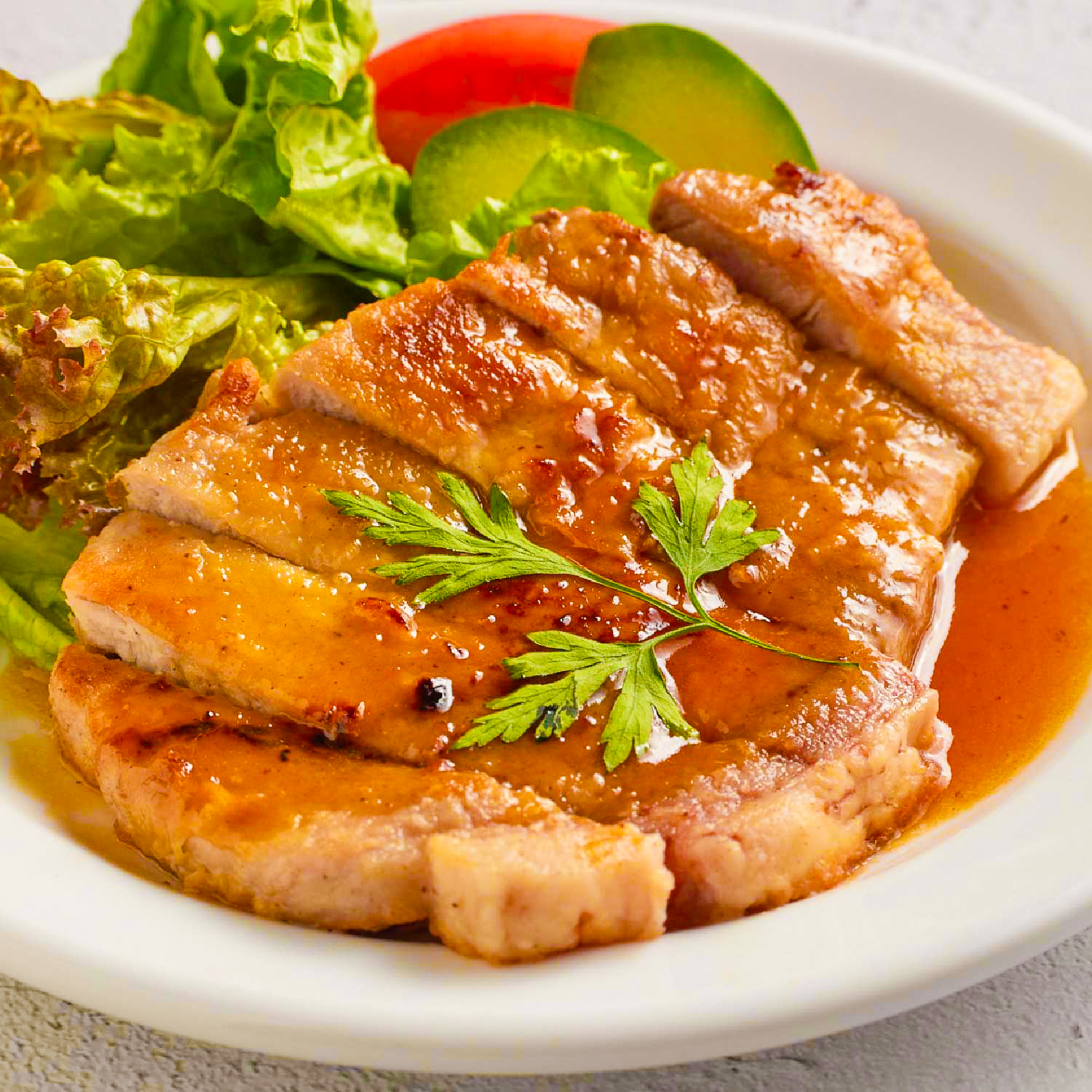 特長 ほのかな柑橘感と玉ねぎがたっぷり入った具材感のあるシャリアピンソースです。