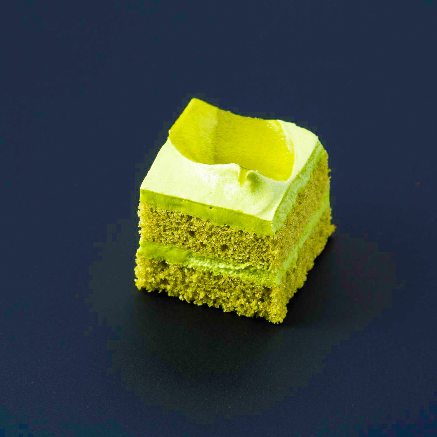特長 宇治抹茶を使用したスポンジとクリームを重ね合わせ、上面を抹茶ソースで仕上げたカットケーキです。
