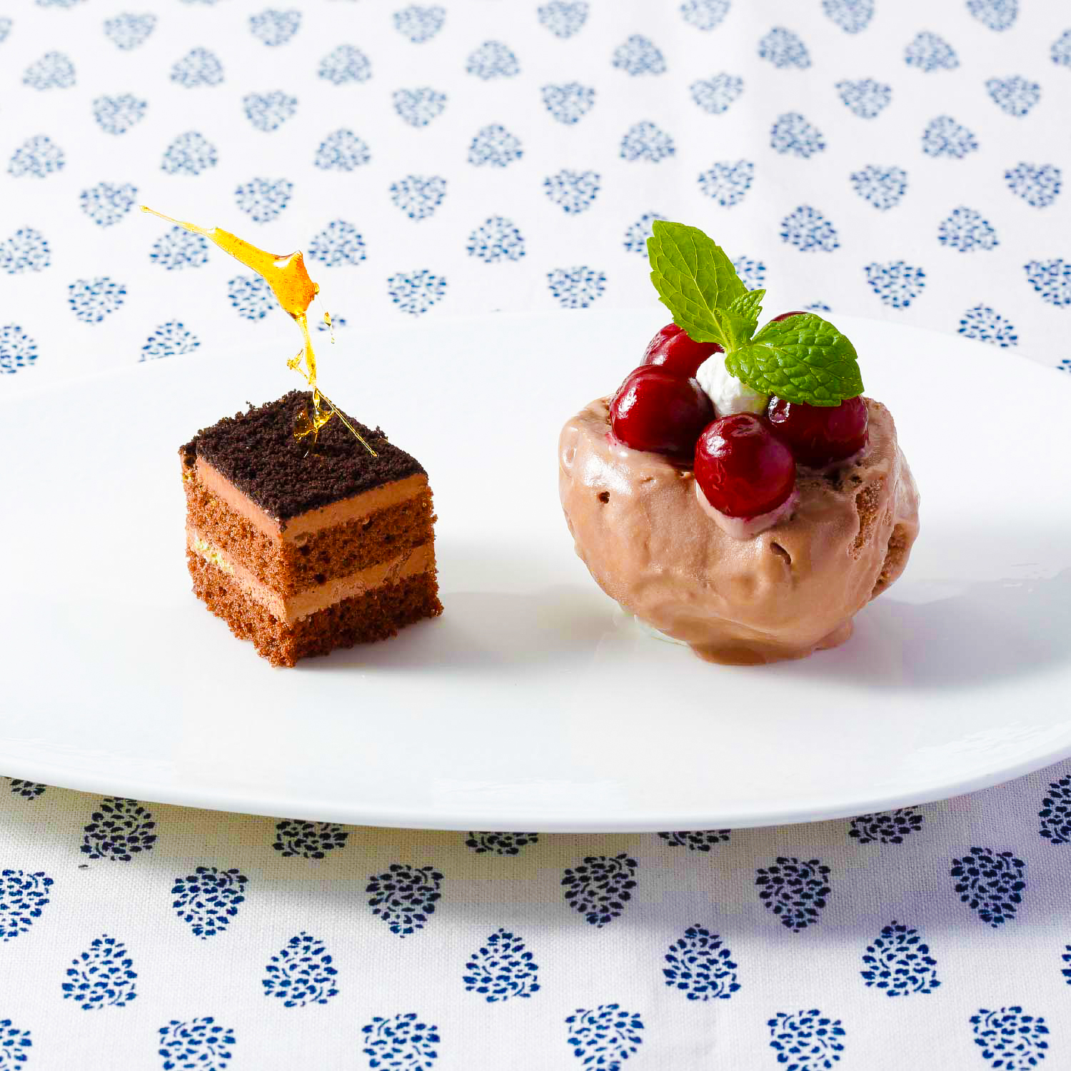 特長 ココアスポンジとマイルドなチョコレートクリームを重ね、ココアクッキーのクランチで仕上げたチョコレートのカットケーキです。