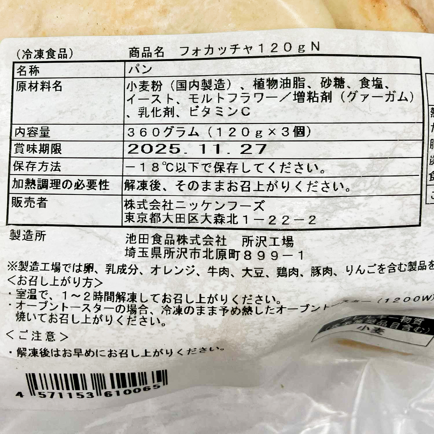 名称(種類別) 冷凍フォカッチャ120gN