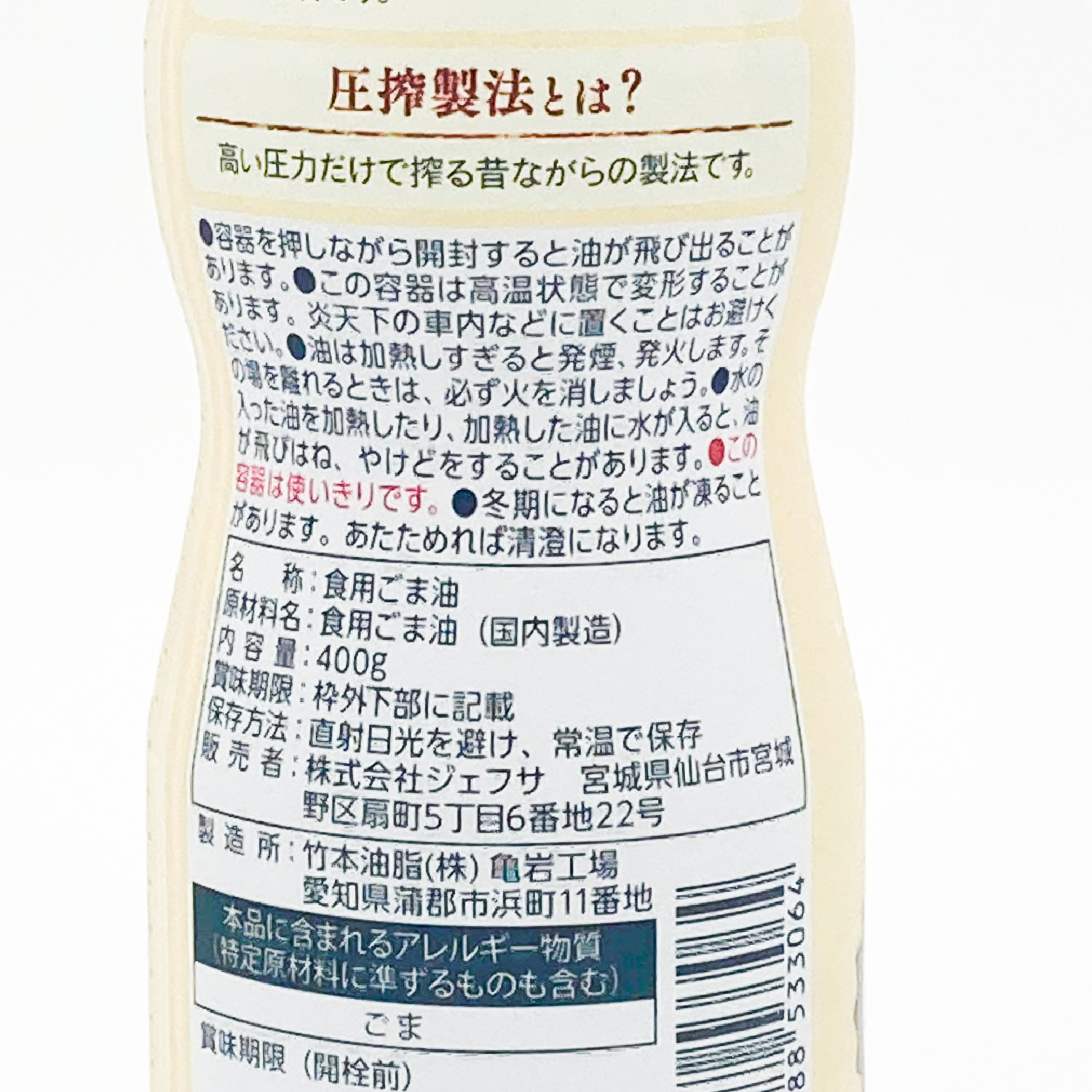 名称(種類別) 一番搾りごま油