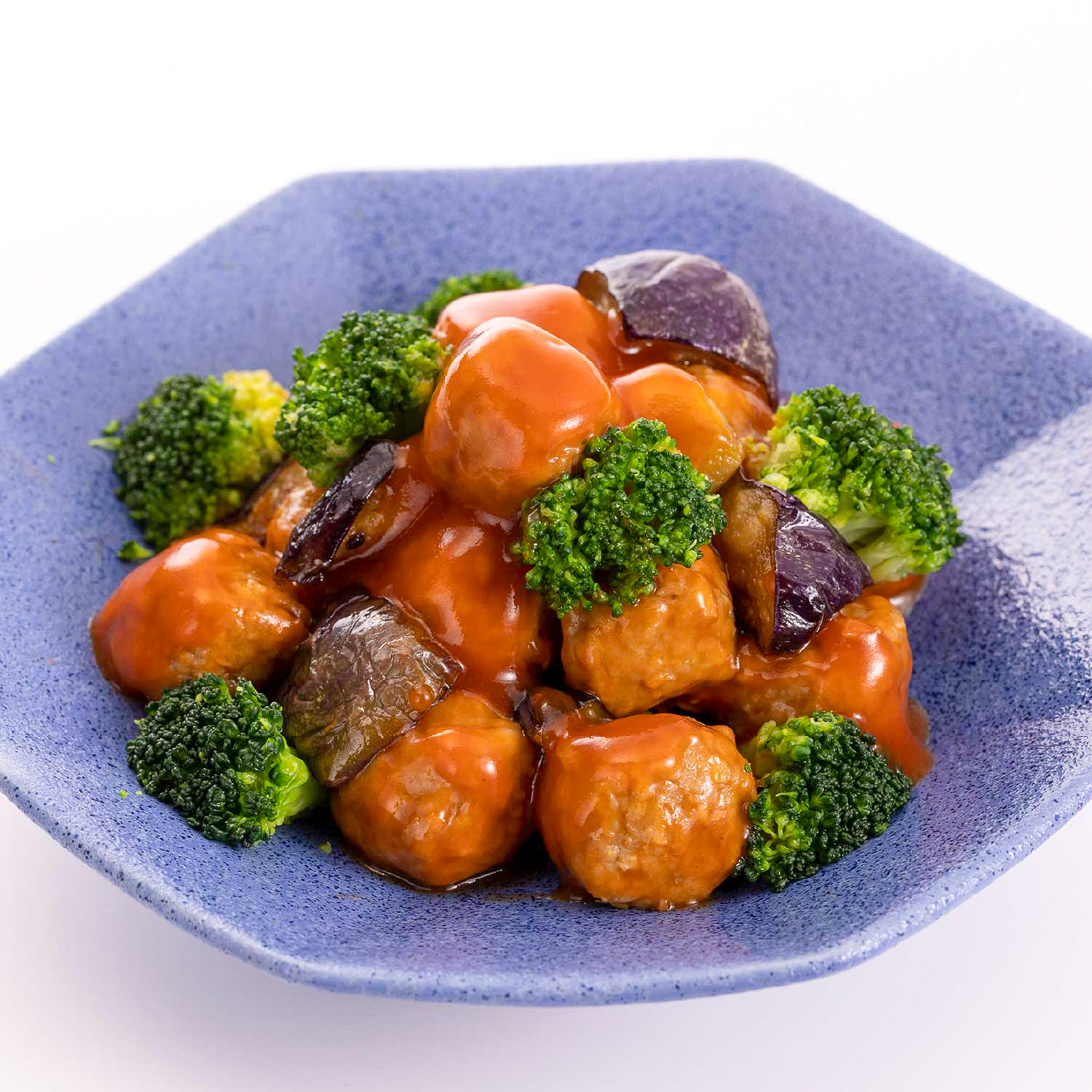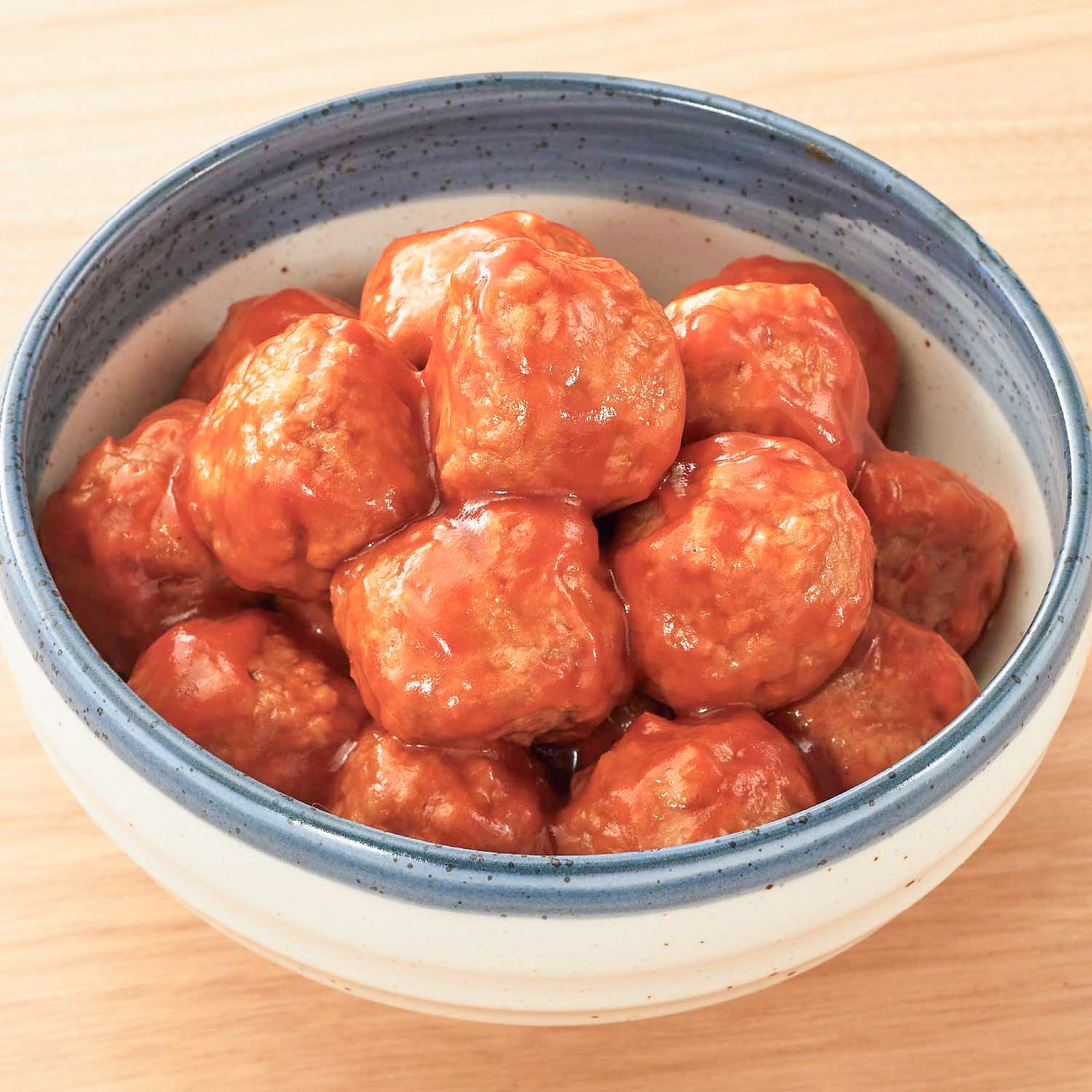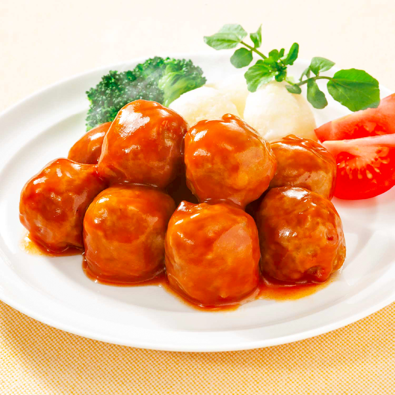 特長 国産鶏肉を原料に使用した肉団子を油で揚げてトマトソースをからめました。自然解凍可。