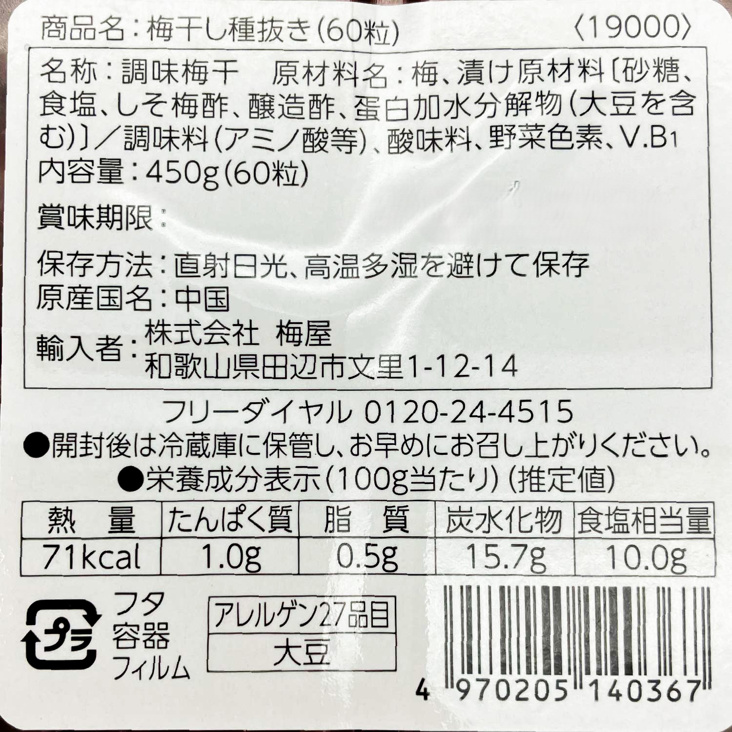 種なし梅60粒赤